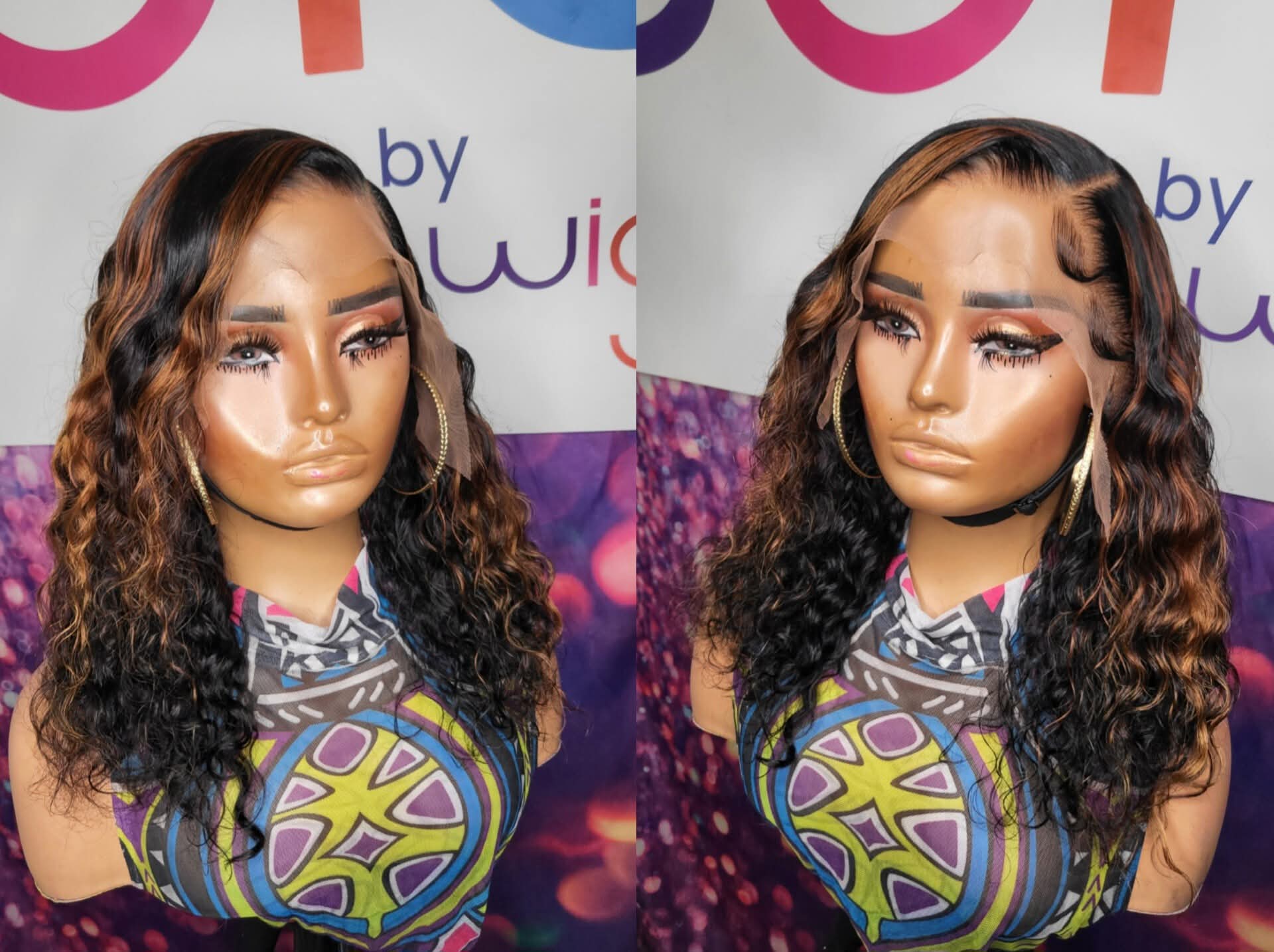 This beautiful wig has a length of 16 inches. Custom Color Highlights. Length is measured from the crown to hair tips. The density is 180, equipped with adjustable straps (wig can be tighten to 20.5 and loosen up to 24.5) and combs. 13x4 Lace Frontal Wig. Glueless. This wig is ready to purchase and is customized to order.