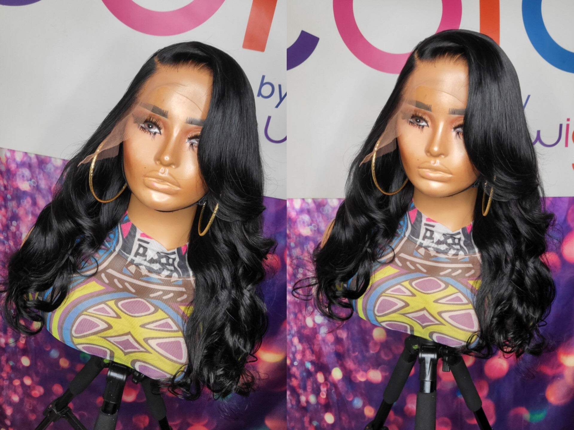 This beautiful wig has a length of 18-26 inches. Layered. Length is measured from the crown to hair tips. The density is 180, equipped with adjustable straps (wig can be tighten to 20.5 and loosen up to 24.5) and combs. 13x4 Lace Frontal Wig. Glueless. This wig is ready to purchase and is customized to order.