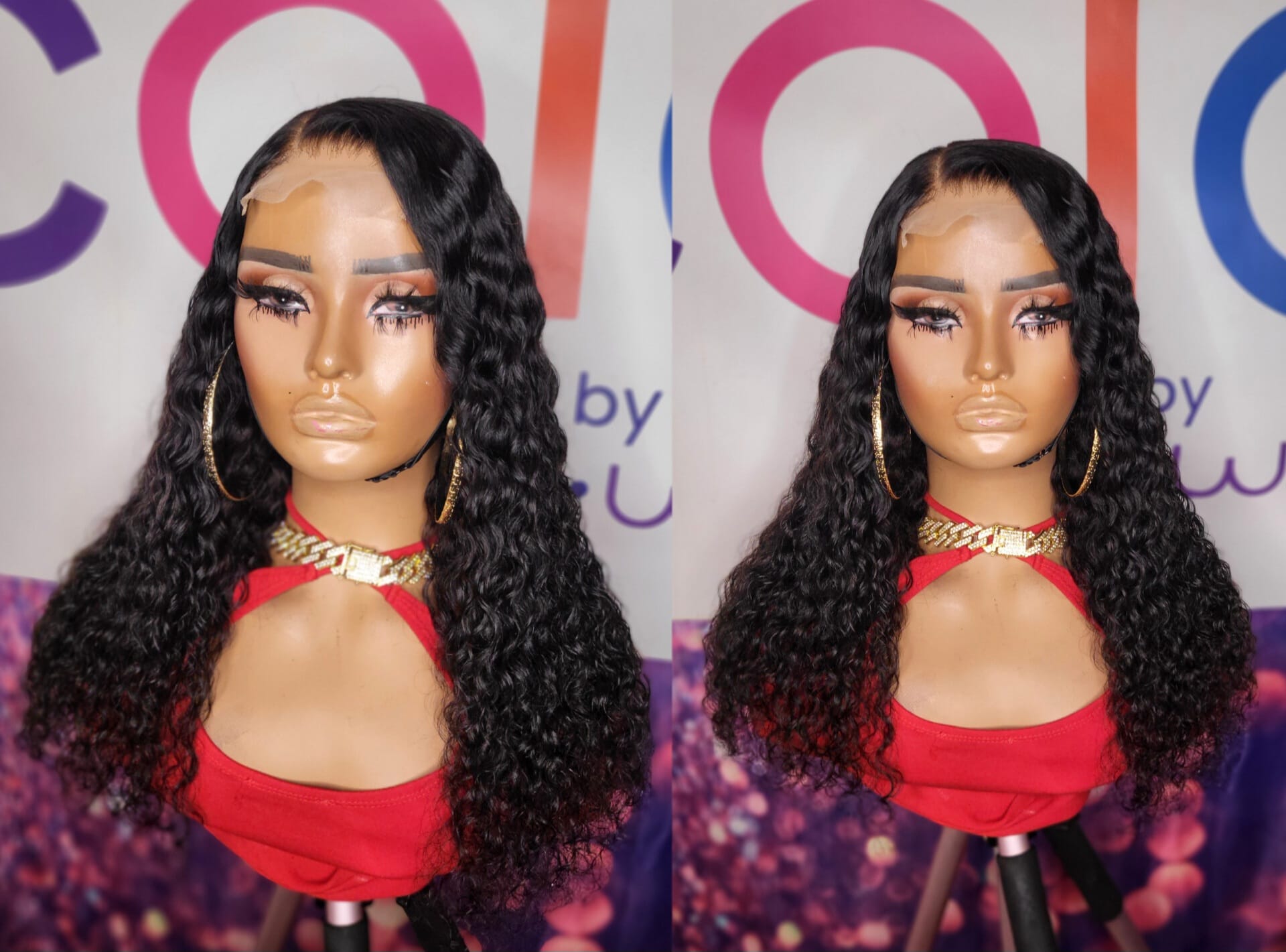 This beautiful wig has a length of 18-26 inches. Length is measured from the crown to hair tips. The density is 220, equipped with adjustable straps (wig can be tighten to 20.5 and loosen up to 24.5) and combs. 4x4 Lace Closure Wig. Water Wave. Transparent Lace. Glueless. This wig is ready to purchase and is customized to order.