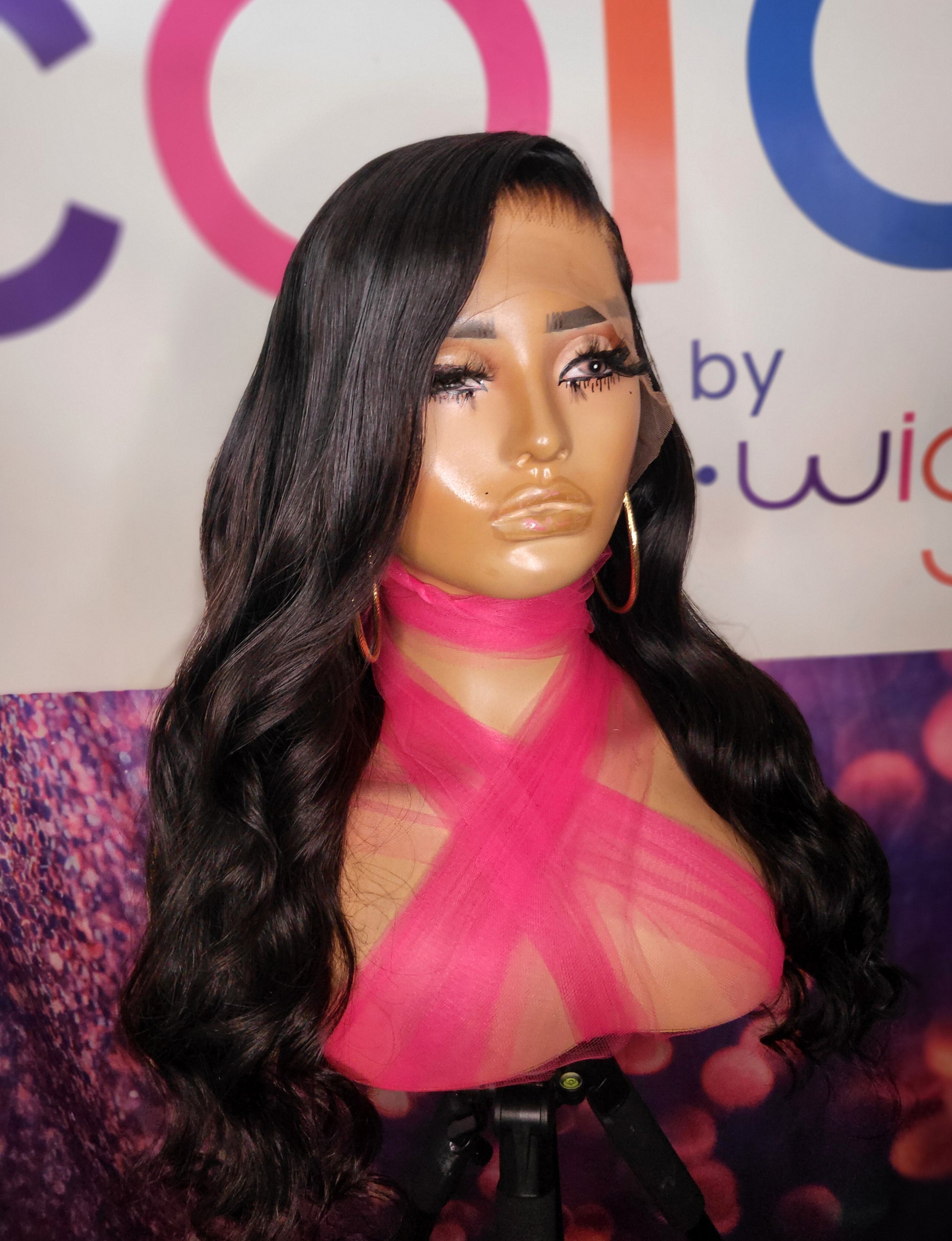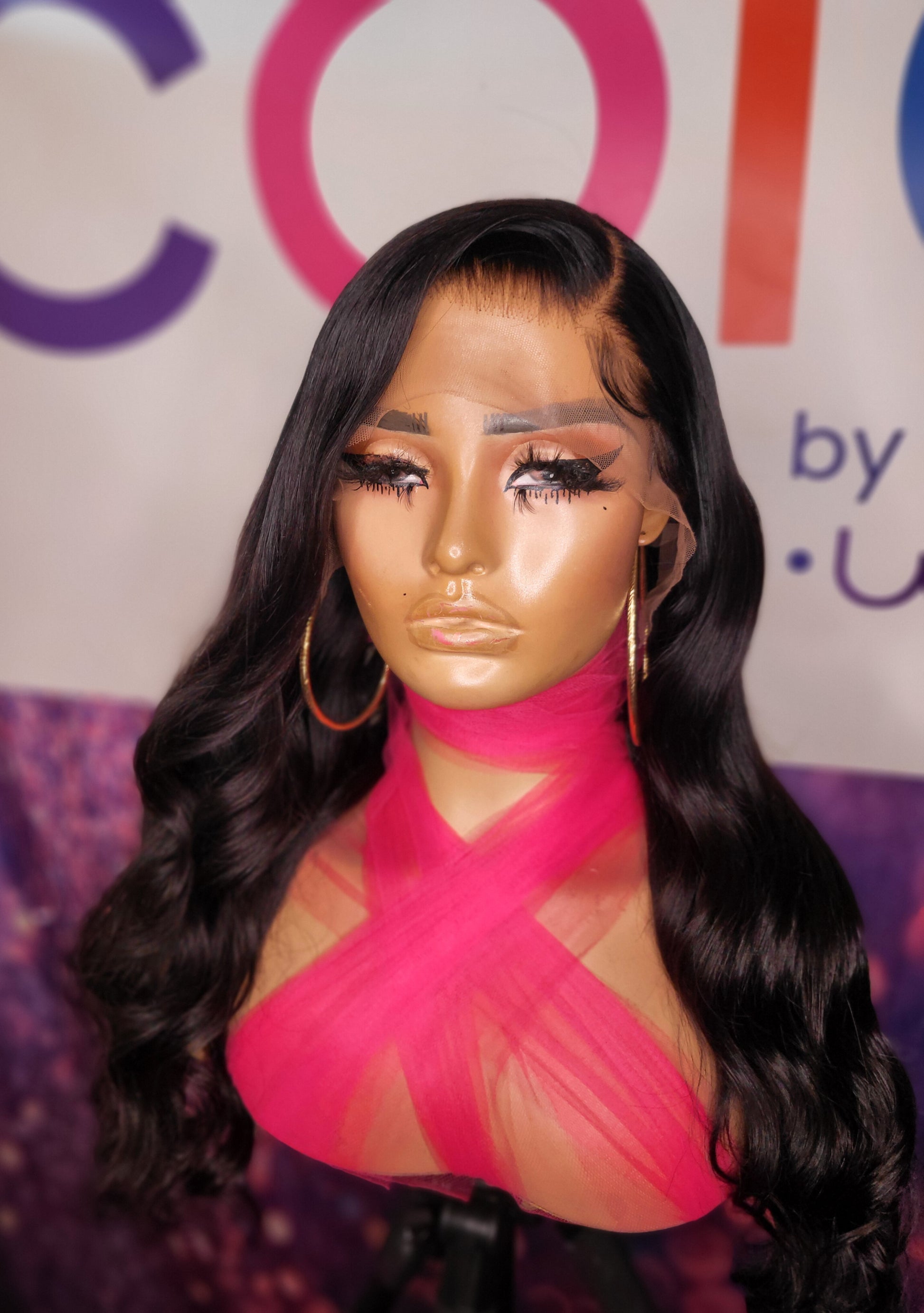 This beautiful wig has a length of 18-26 inches. Length is measured from the crown to hair tips. The density is 180, equipped with adjustable straps (wig can be tighten to 20.5 and loosen up to 24.5) and combs. 13x4 Lace Frontal Wig. Glueless. This wig is ready to purchase and is customized to order.