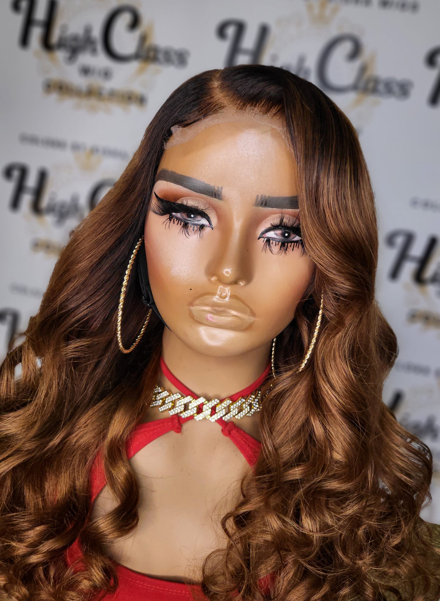 This beautiful wig has a length of 24 inches. Custom Color. Length is measured from the crown to hair tips. The density is 200, equipped with adjustable straps (wig can be tighten to 20.5 and loosen up to 24.5) and combs. 5X5 Transparent Lace. Glueless. This wig is ready to purchase and is customized to order.