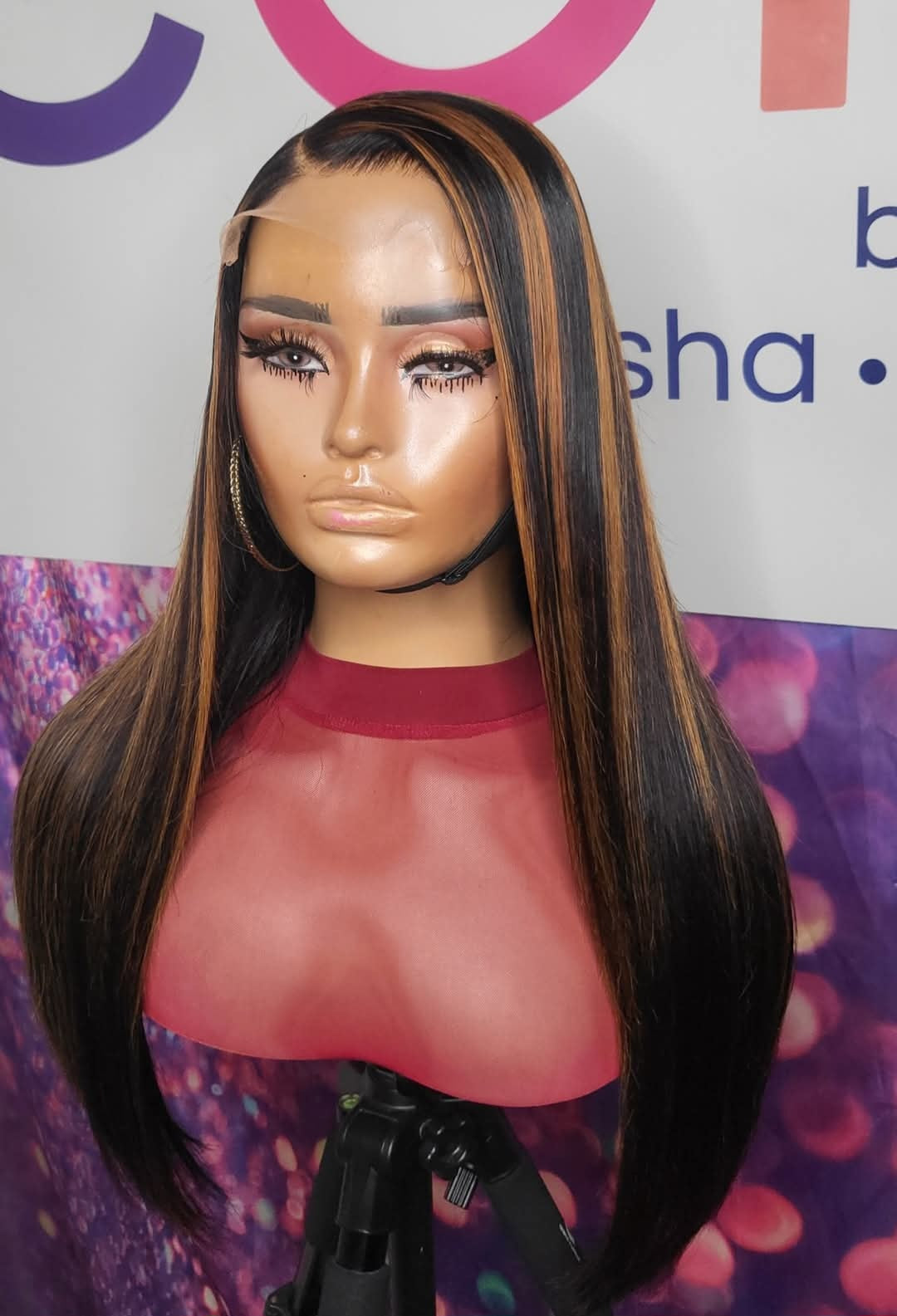 This beautiful wig has a length of 24 inches. Custom Color Highlights. Length is measured from the crown to hair tips. The density is 180, equipped with adjustable straps (wig can be tighten to 20.5 and loosen up to 24.5) and combs. This is a 4x4 Lace Closure Wig. This wig is ready to purchase and is customized to order.