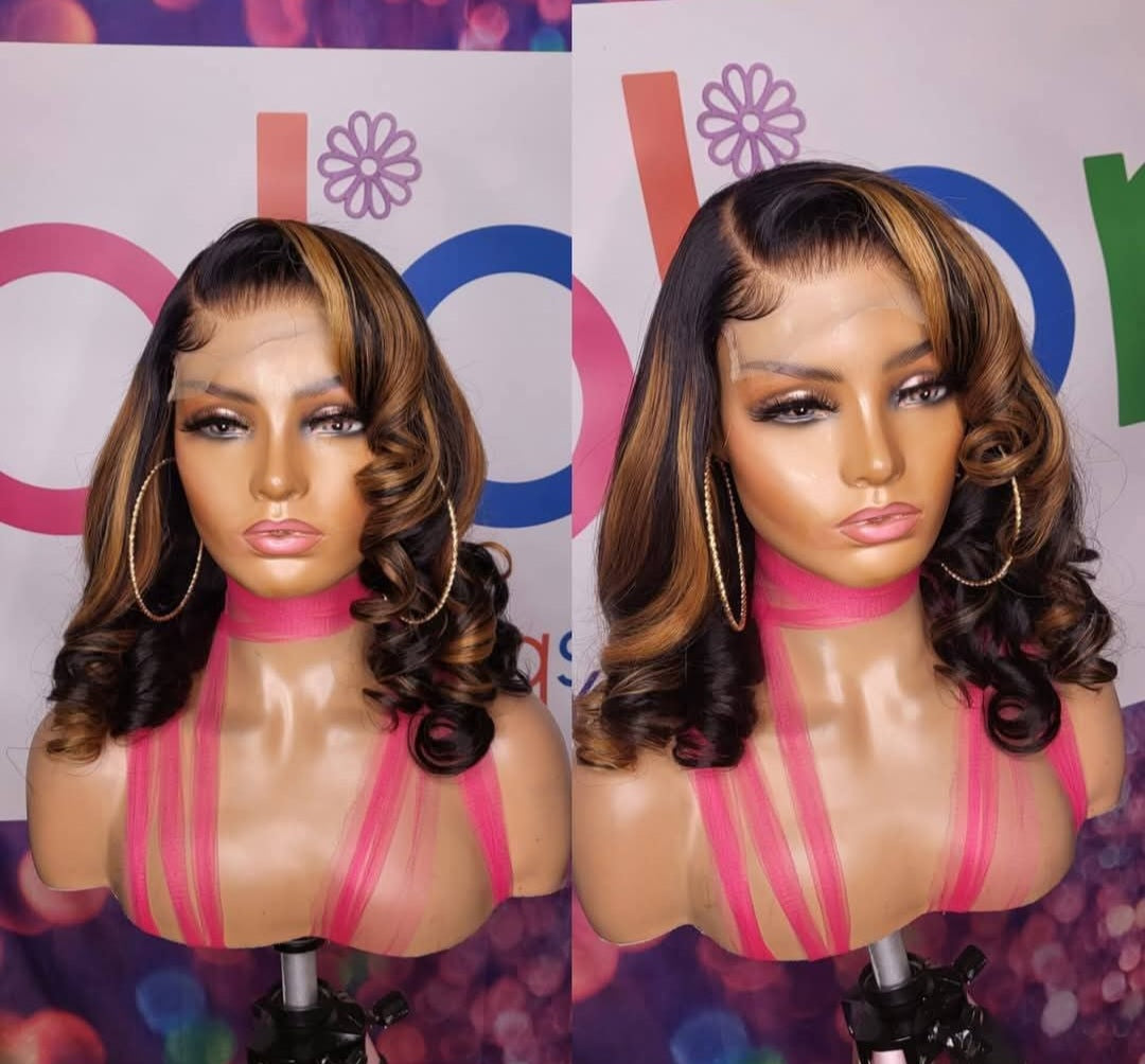 This beautiful wig has a length of 18 inches. Custom Color Highlights. Length is measured from the crown to hair tips. The density is 180, equipped with adjustable straps (wig can be tighten to 20.5 and loosen up to 24.5) and combs. 4x4 Lace Frontal Wig. Glueless. This wig is ready to purchase and is customized to order.