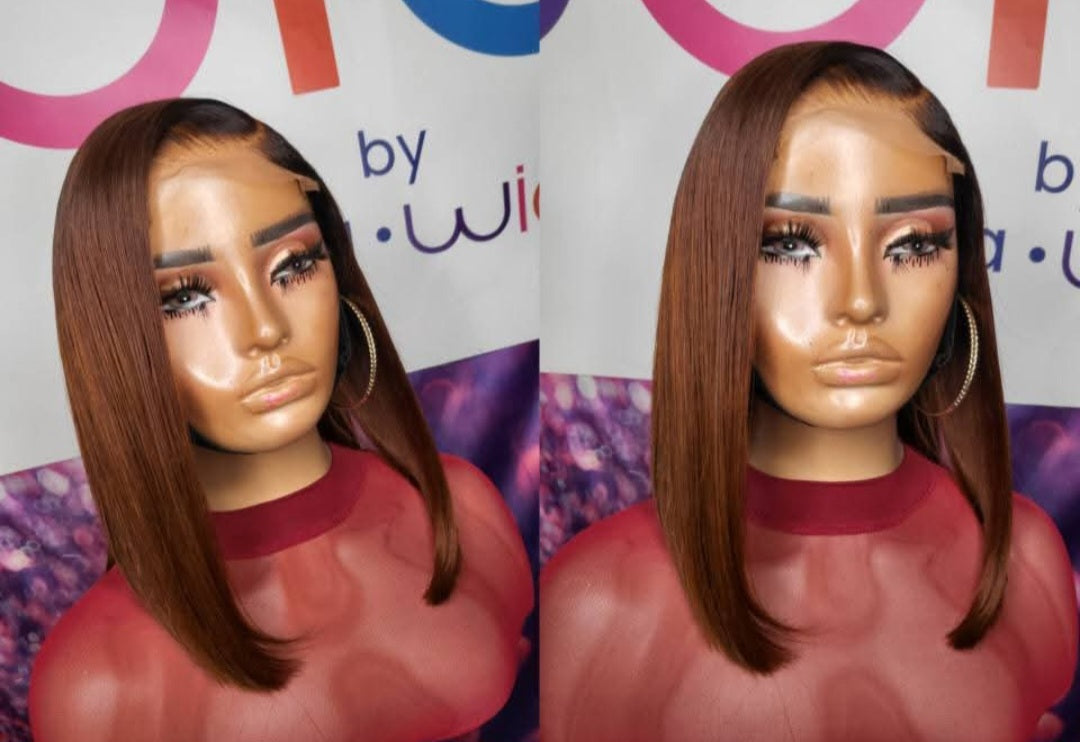 This beautiful wig has a length of 14 inches. Custom Color. Bob Cut. Length is measured from the crown to hair tips. The density is 180, equipped with adjustable straps (wig can be tighten to 20.5 and loosen up to 24.5) and combs. This is a 4x4 Lace Closure Wig. This wig is ready to purchase and is customized to order.