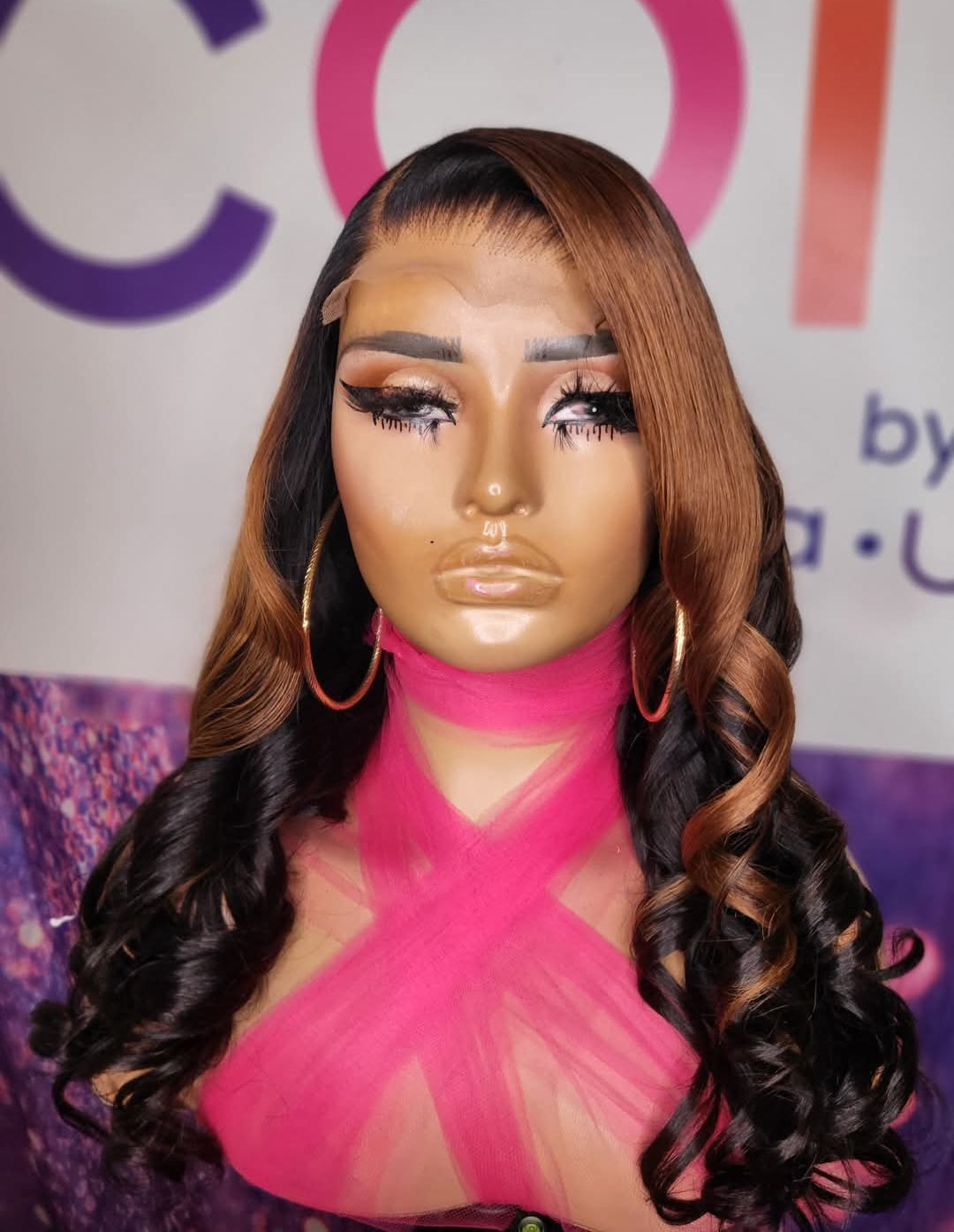 This beautiful wig has a length of 24 inches. Custom Color. Length is measured from the crown to hair tips. The density is 180, equipped with adjustable straps (wig can be tighten to 20.5 and loosen up to 24.5) and combs. This is a 4x4 Lace Closure Wig. This wig is ready to purchase and is customized to order.