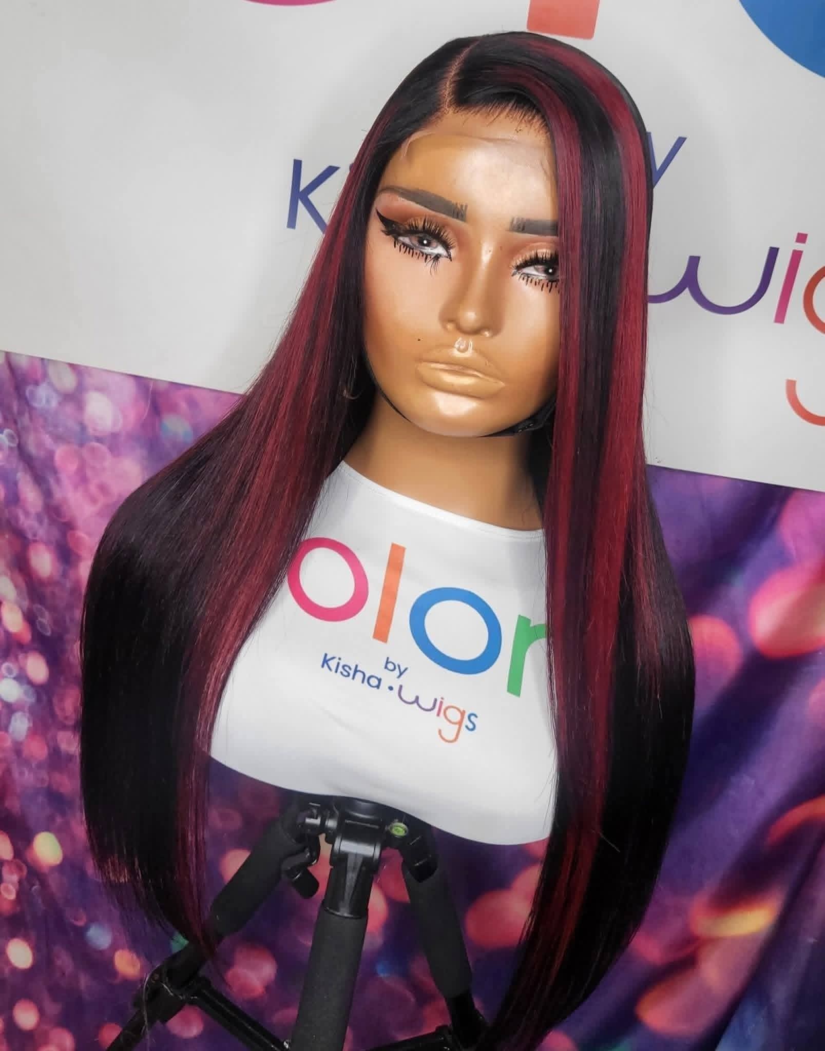 This beautiful wig has a length of 24 inches. Custom Color Highlights. Length is measured from the crown to hair tips. The density is 180, equipped with adjustable straps (wig can be tighten to 20.5 and loosen up to 24.5) and combs. This is a 4x4 Lace Closure Wig. This wig is ready to purchase and is customized to order.