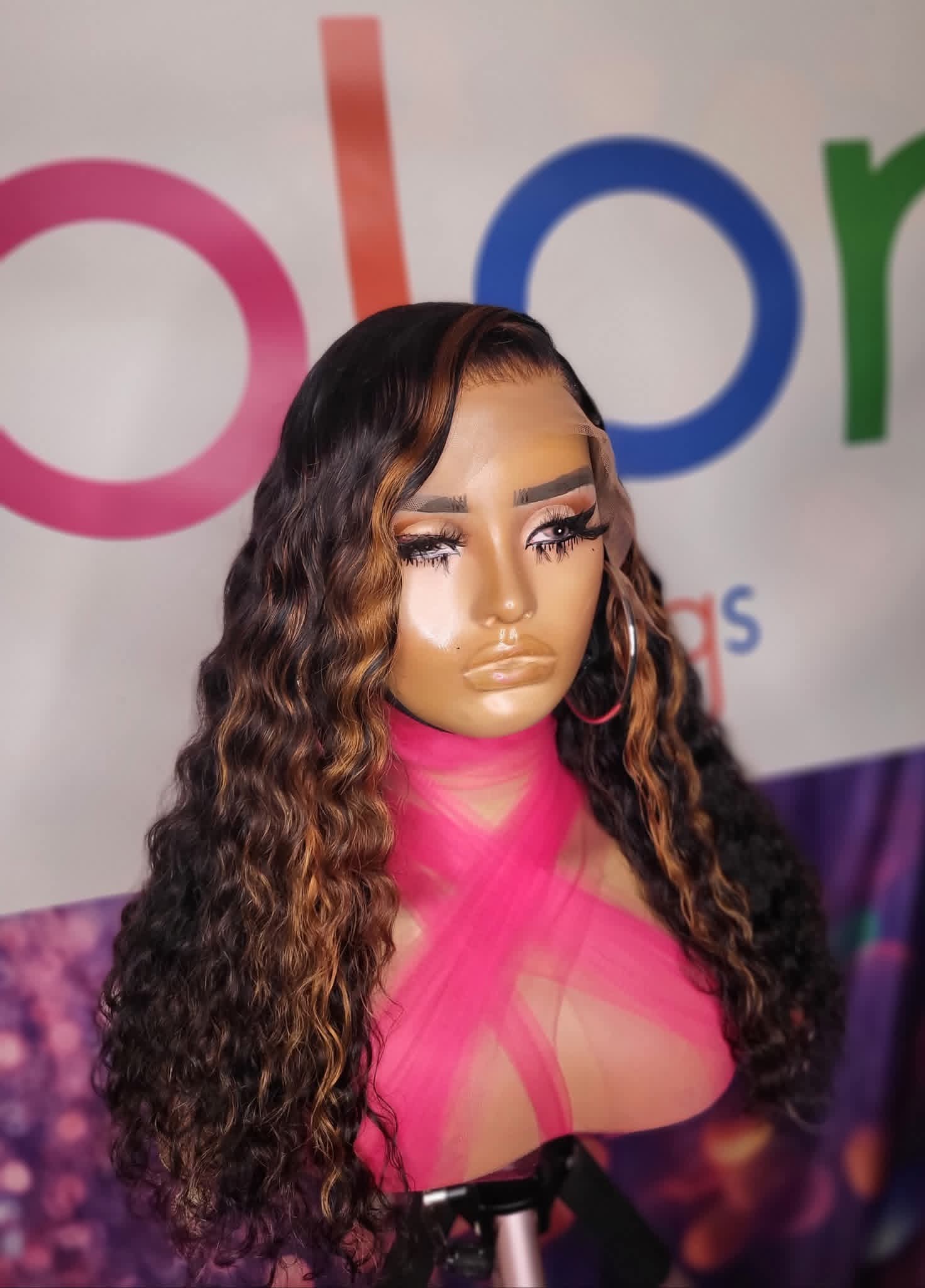 This beautiful wig has a length of 24 inches. Custom Color Highlights. Length is measured from the crown to hair tips. The density is 180, equipped with adjustable straps (wig can be tighten to 20.5 and loosen up to 24.5) and combs. This is a 13x4 Lace Frontal Wig. This wig is ready to purchase and is customized to order.
